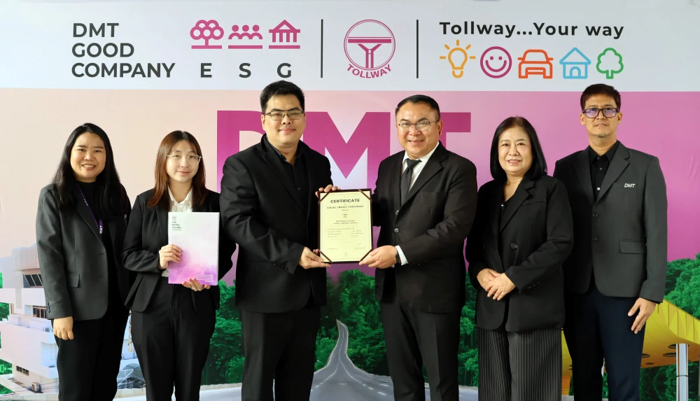 DMT รับมอบใบประกาศนียบัตรรับรอง “โครงการ Tollway Better Way อบรมส่งเสริมสนับสนุนสร้างอาชีพให้กับประชาชนเขตหลักสี่ และเขตดอนเมือง” จากสถาบันไทยพัฒน์