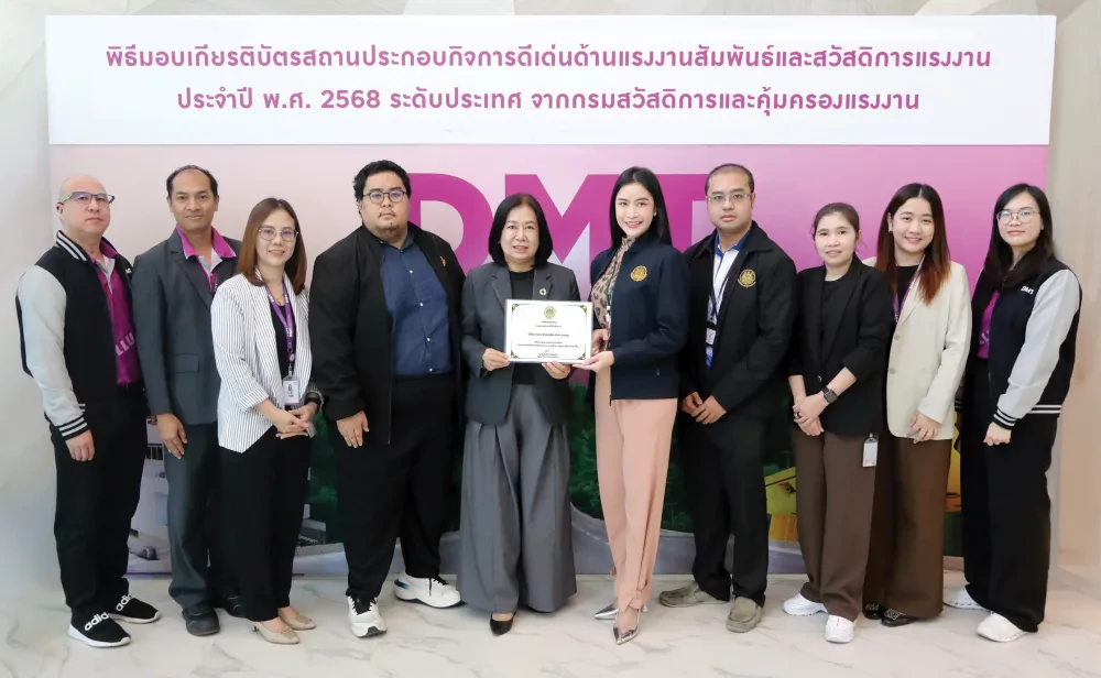 The award ceremony was held on October 2, 2025, with Ms. Burinthip Phutthala, Labour Academic Officer, Department of Labour Protection and Welfare, representing the Department in presenting the award to DMT. Ms. Atchara Chareonporn, Chief of Sustainable Development Officer, represented the company in receiving this prestigious honor.