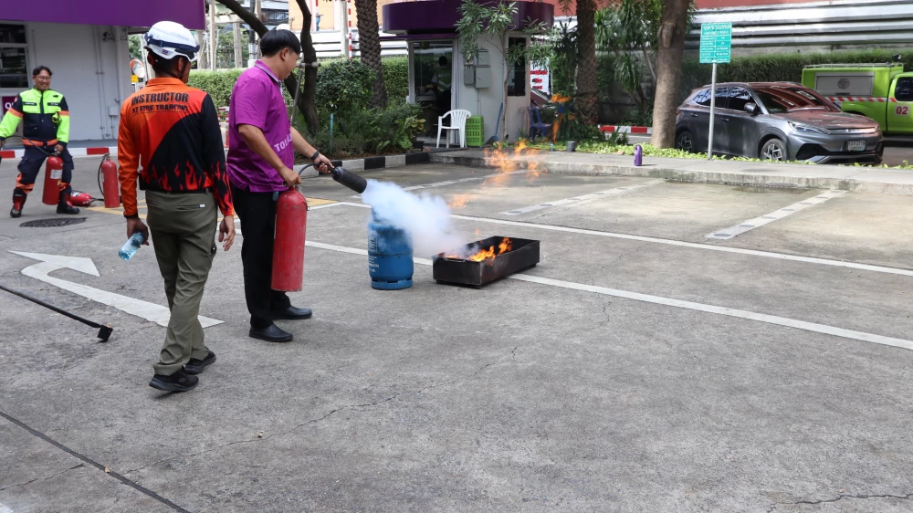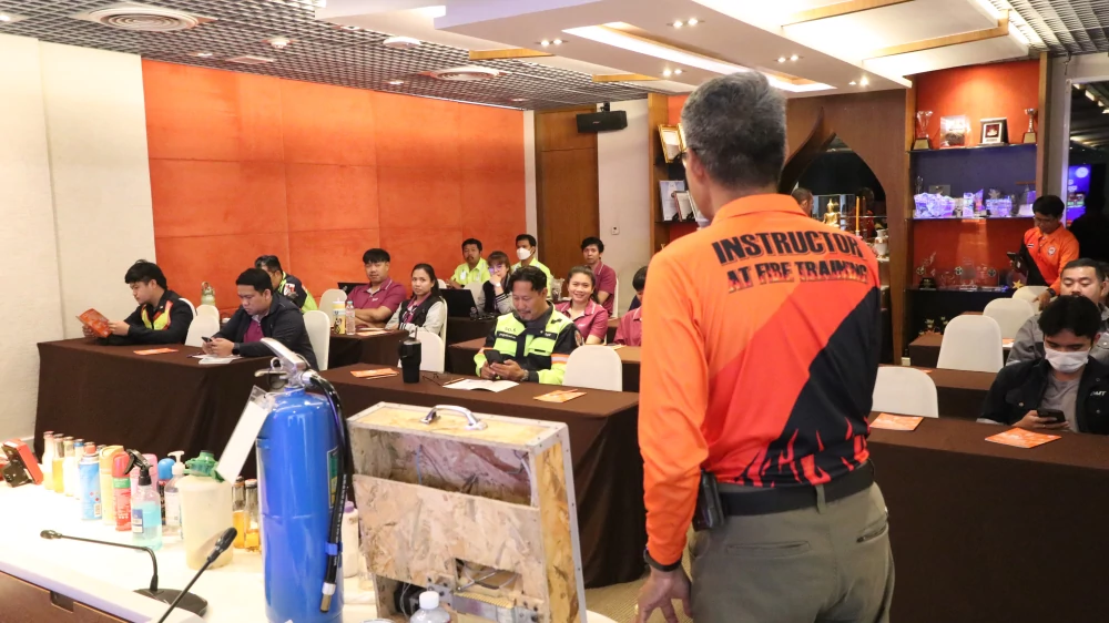 This training was conducted in accordance with the Ministerial Regulation on Safety Management Standards for Fire Prevention and Fire Suppression B.E. 2555 (2012). The objective was to ensure that employees are properly prepared to respond to emergencies accurately and promptly.