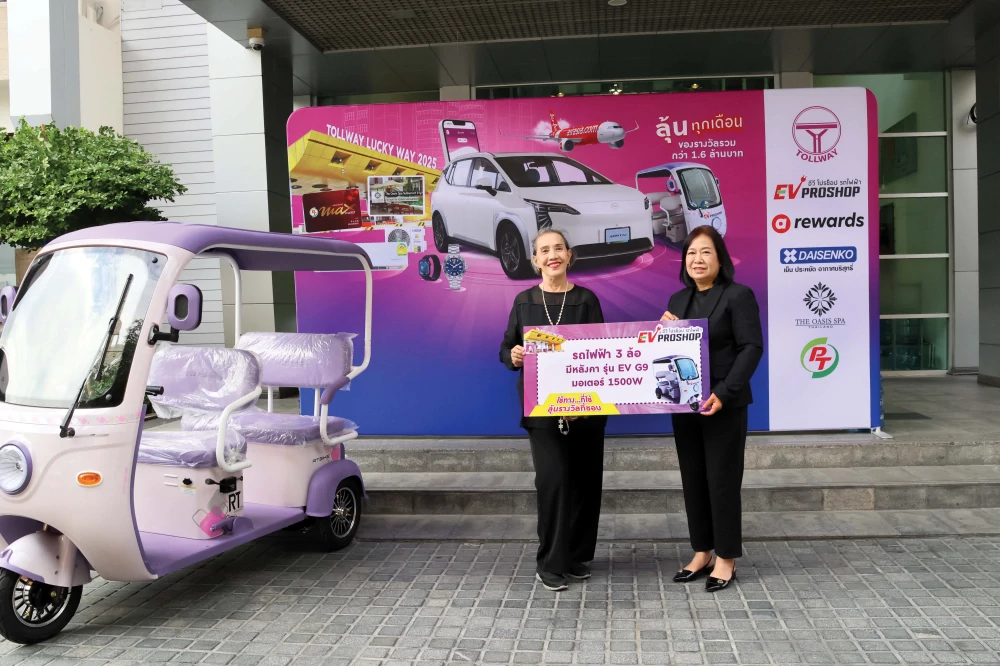คุณอัจฉรา เจริญพร ผู้ช่วยกรรมการผู้จัดการอาวุโส สายงานพัฒนาความยั่งยืนองค์กร บริษัท ทางยกระดับดอนเมือง จำกัด (มหาชน) มอบรางวัลให้แก่ผู้โชคดีจากโครงการ “Tollway Lucky Way 2025” ประจำเดือนกันยายน 2568 เมื่อวันพุธที่ 29 ตุลาคม 2568 เวลา 11.00 – 12.00 น. ณ สำนักงานใหญ่ บริษัท ทางยกระดับดอนเมือง จำกัด (มหาชน) โดยของรางวัลที่มอบในครั้งนี้ประกอบด้วย รถยนต์ไฟฟ้า AION Y Plus 490 Premium, นาฬิกาหรู TAG Heuer Formula 1, รถไฟฟ้า 3 ล้อรุ่น EV G9 และ Apple Watch Series 10 (GPS + Cellular) ซึ่งเป็นรางวัลใหญ่จากการจับรางวัลประจำเดือนสุดท้ายของแคมเปญ “Tollway Lucky Way 2025” ที่จัดขึ้นภายใต้แนวคิด “ใช้ทางที่ใช่...ลุ้นรางวัลที่ชอบ”