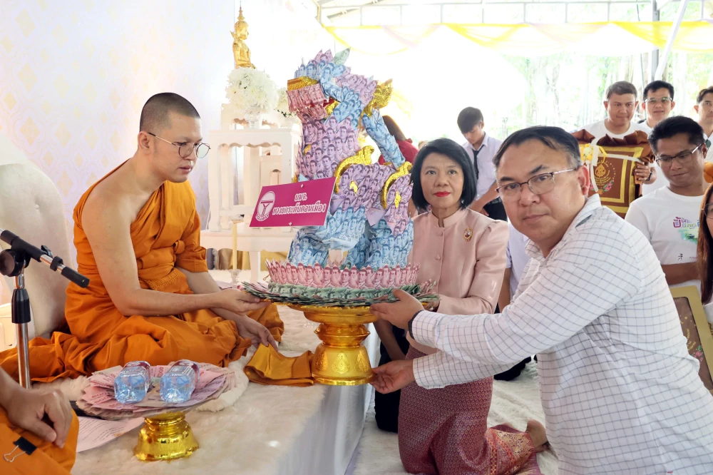 ในการนี้ ดร.ศักดิ์ดา พรรณไวย กรรมการผู้จัดการ พร้อมด้วยคณะผู้บริหารและพนักงานบริษัทฯ เป็นผู้แทนถวายปัจจัยจากเงินทำบุญที่รวบรวมจากผู้มีจิตศรัทธาทั้งภายในและภายนอกองค์กร รวมยอดเงินบริจาคทั้งสิ้น 328,899 บาท เพื่อร่วมพัฒนาคุณภาพชีวิตของเยาวชนในระดับอาชีวศึกษาให้มีโอกาสทางการศึกษาอย่างยั่งยืน และร่วมสืบสานประเพณีสำคัญทางพระพุทธศาสนา